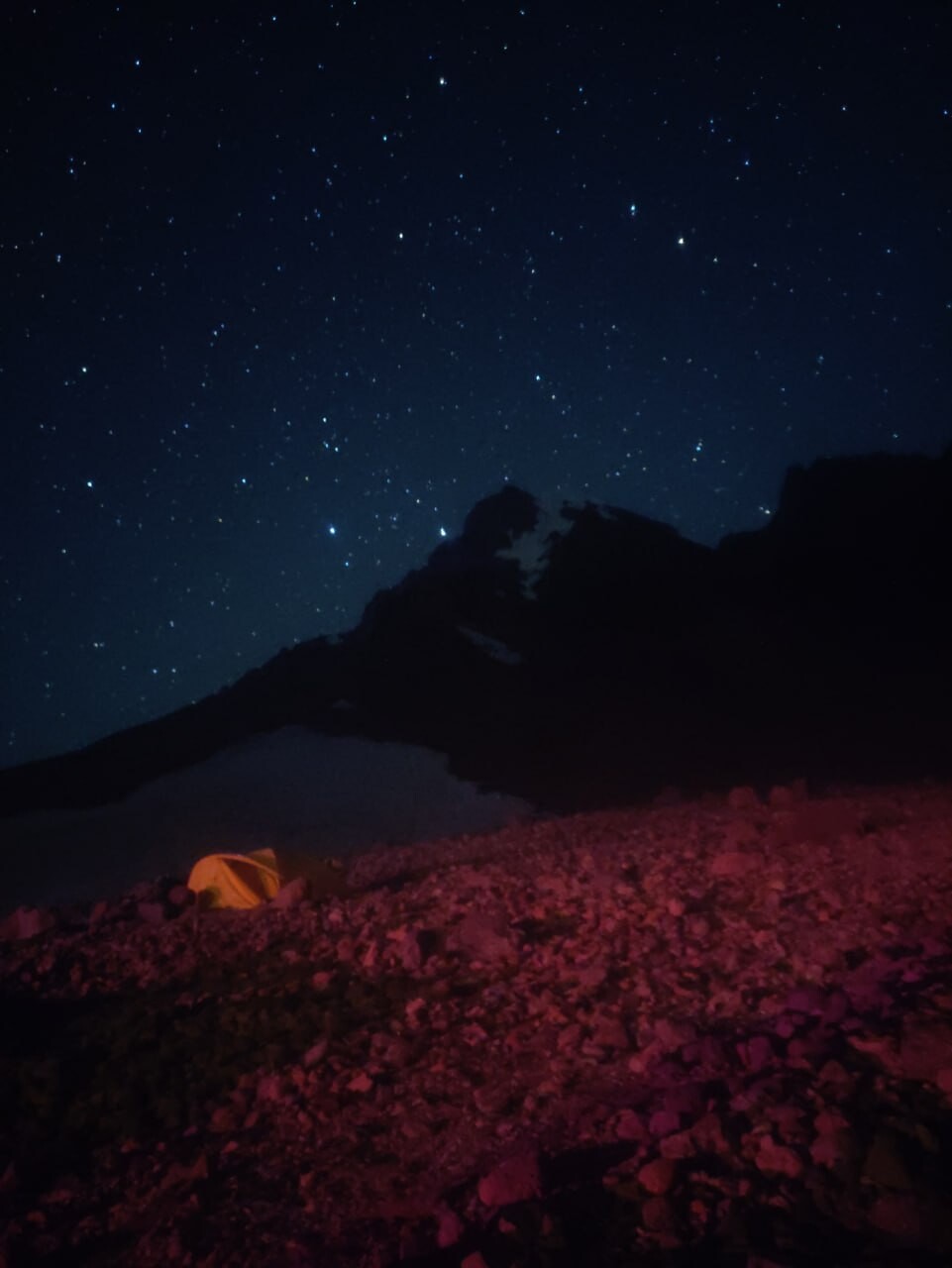 увидим потрясающий рассвет и тень Эльбруса! По “косой полке” двигаемся до