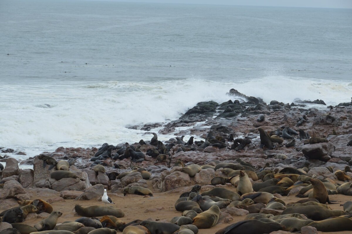 Завтракаем и отправляемся в 130-километровый путь по довольно мрачному месту, именуемому Берегом Скелетов. Протяженность этого загадочного и таинственного куска суши в Намибии немалая, она составляет около 1000 километров. И всё это для того, чтобы попасть в природный заказник Кейп-Кросс – крупнейшее в мире лежбище морских котиков, доступное для туристов. Пишут, что в Намибии, в целом, имеется 26 колоний тюленей - на материке и на островах в океане, а в общей сложности – около 650 000 особей, из которых от 80 000 до 200 000 особей (в зависимости от сезона) обитают именно здесь, в колонии Кейп-Кросс.