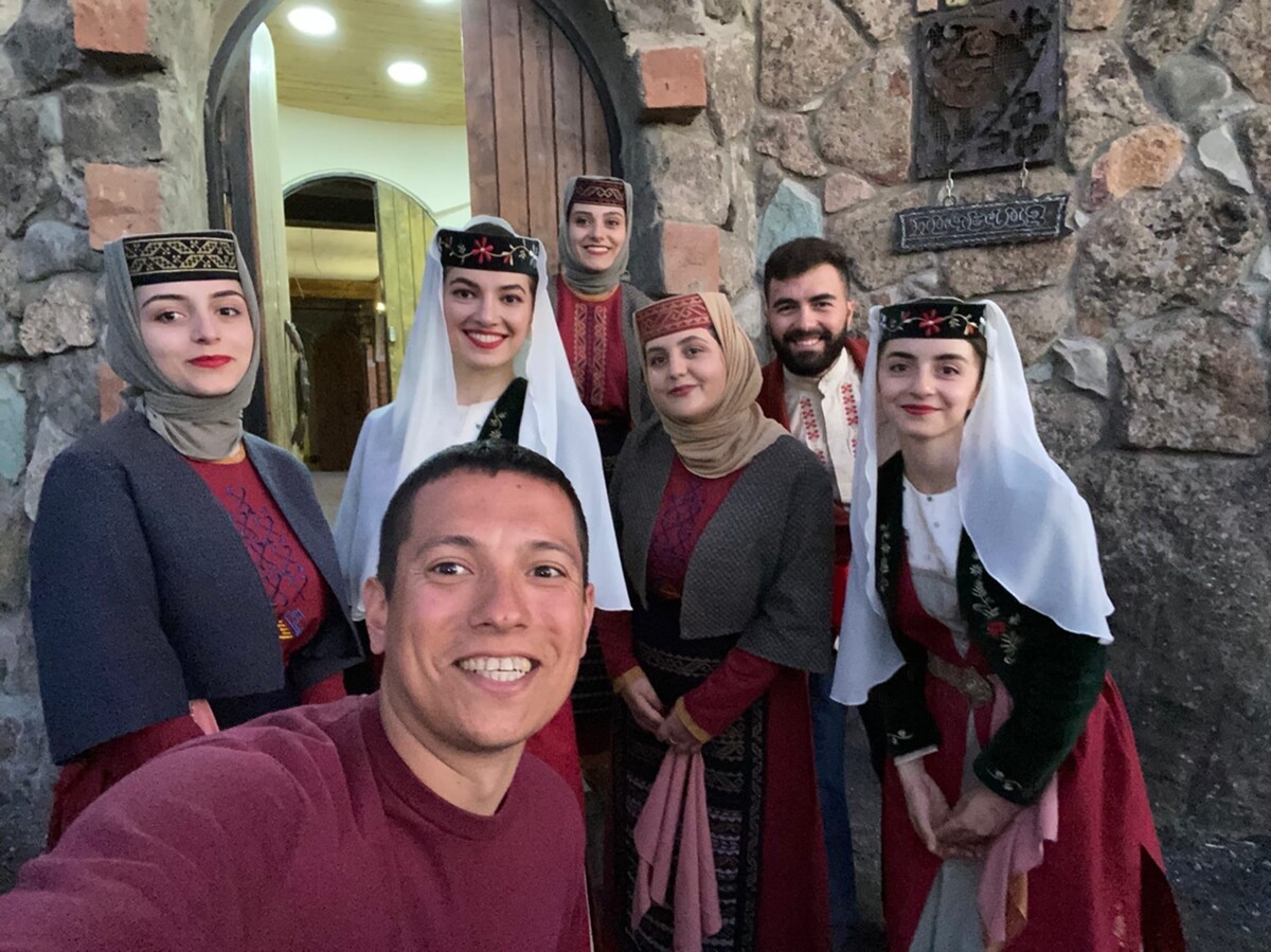 Прилетев с утра в международный аэропорт Еревана - Звартноц, едем в отель в центре города, где после заселения проводим небольшое собрание и отправляемся изучать "розовый город" - Ереван. Называют его так, потому что большинство зданий построено из розового вулканического материала - туф. Прогуливаясь по центру, осматриваем главные достопримечательности: национальную академию, местный Арбат — Проспект Маштоца, театр оперы и балета, культурно — архитектурный комплекс Каскад и здание хранилища