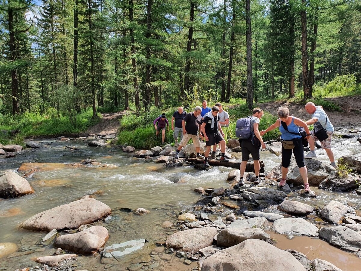 С утра вкусно завтракаем и поднимаемся на машине высокой проходимости к Нижнему Мультинскому озеру, откуда начнется пешая экскурсия к Среднему Мультинскому озеру по лесной тропинке в смешанном лесу богатым грибами и ягодами. Также на пути встретим шумный водопад с каменными глыбами торчащими из шумов, на них произрастает кедр, вереск, бадан. Не доходя до шумов, есть удобный пляж. А на левой стороне шумов начинается крупный курумник - это большие осыпи камней причудливой формы, нагромоздившиеся друг на друга, которые образовали большие пещеры и гроты. Выезд на Мультинские озёра занимает 8-10 часов, поэтому вернёмся на базу только к вечеру и по желанию посетим баню.