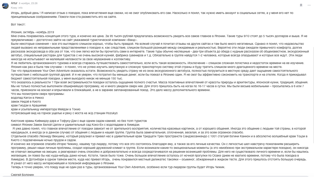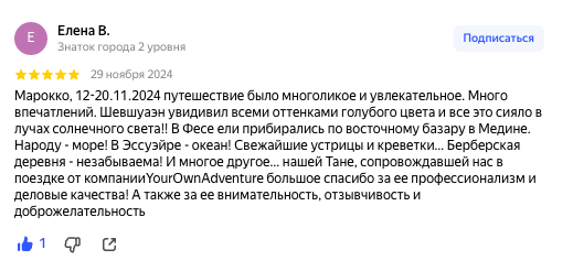 Будем рады увидеть Ваш отзыв о путешествии с Клубом YourOwnadventure