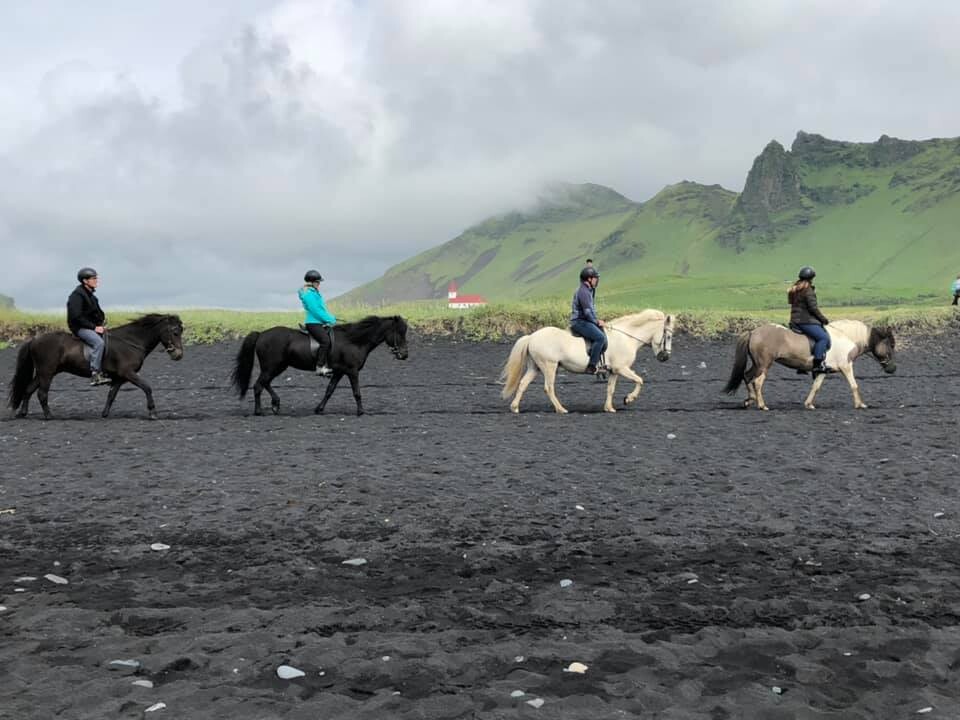Перед тем, как покинуть Вик, сходили на городской пляж. Океан чуть поутих, небо расчистилось, и мы в очередной раз почувствовали себя на съёмочной площадке «Игры престолов»: мимо нас с невероятной грацией проехала группа конных туристов. Как же это было красиво на фоне океана и чёрного песка, мамадорогая... Думаю теперь про конный поход куда-нибудь, потому что ну это же очень круто должно быть)