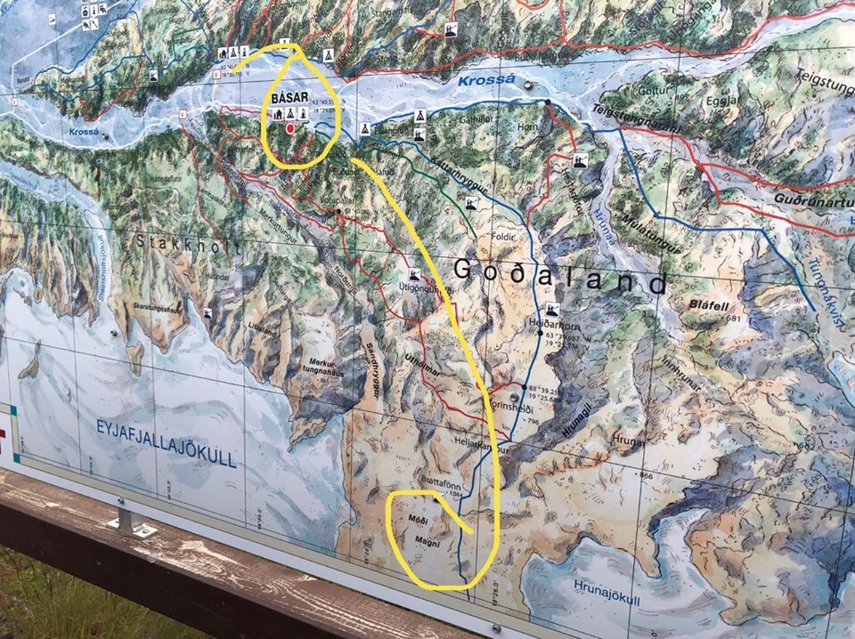 Вечером 5го дня, сидя за сытным ужином после сауны и блаженного горячего душа, сообща решили снова немного отклониться от программы. Мы должны были на следующее утро выйти с рюкзаками к знаменитому вулкану, пересечь перевал, спуститься на несколько километров и встать на дикую ночёвку (кстати: выяснилось, что Эйяфьядлайёкюдль это ледник, а уже под ним - вулкан). На следующий день мы должны были спуститься к деревне Скоугар и водопаду Скоугафосс. Однако мы поняли, что мы совершенно не готовы расстаться с замечательным Volcano huts, и решили сделать так: сходить до вулкана туда/обратно налегке (что по километражу получалось даже больше), а наутро поехать на автобусе через Скоугафосс к берегу океана, в деревню Вик. И вот день “X” настал и мы пошли покорять монстра, парализовавшего столбами пепла европейское авиасообщение в 2010-м.