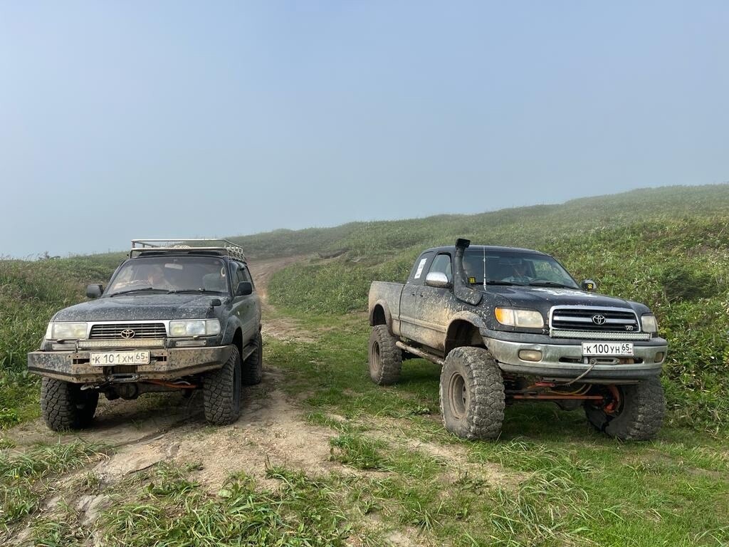 Продолжаем исследовать красоты побережья Сахалина, но на этот раз уже не с моря, а с суши. Утром завтракаем и отправляемся на подготовленных джипах, ибо обычному транспорту наш маршрут не по силам:), к ещё одной знаменитой достопримечательности острова – мысу Великан, считающемуся памятником природы регионального значения и являющемуся одним из символов Сахалина.