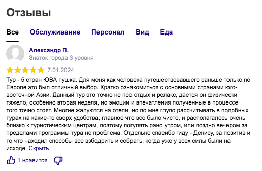 - Перемещения на разнообразных видах транспорта: микроавтобусы, такси, лодки, катера, паромы, самолеты, тук-туки, моторикши