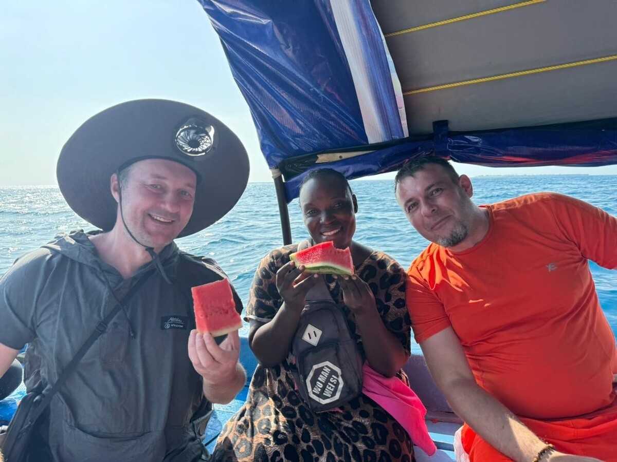 С утра вкусно завтракаем в отеле, берем крем от загара, полотенце, купальники с плавками и отправляемся на морскую экскурсию по самым популярным среди туристов островам архипелага Занзибар, чтобы вдоволь накупать в море и нафотографироваться на белоснежном песке. Сначала нас ждет живописнейший