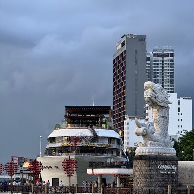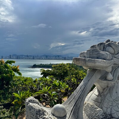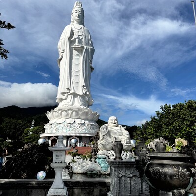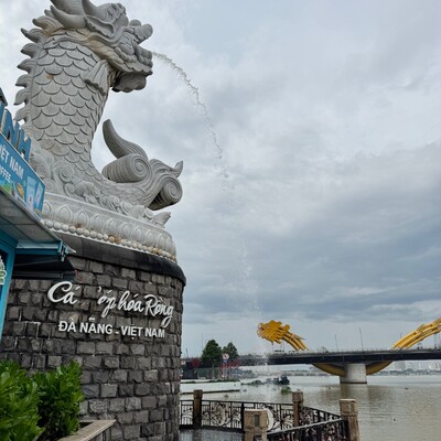 Но тем не менее мы успеем обзорно познакомится и с самим городом, а точнее двумя его основными символами: Мост Дракона (арочный мост через реку Ха, названный так за форму арок, имитирующую гигантского золотого дракона); и "леди Будда" (высочайшая 68-метровая статуя Будды во Вьетнаме, расположена на территории пагоды Лин Унг, в 14 километрах от центра Дананга).